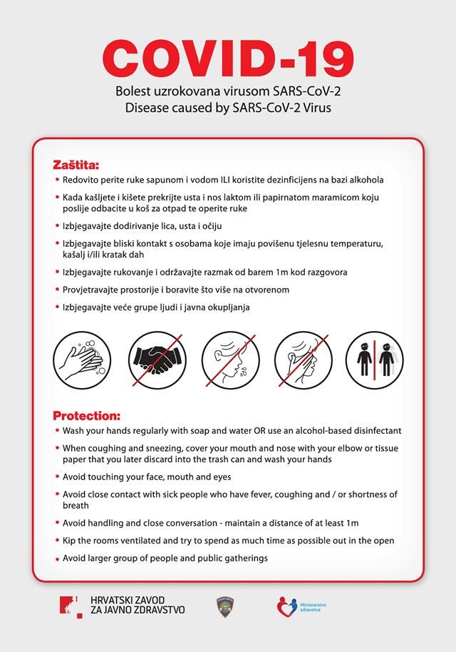 Također, organizatori skupova ili javnih okupljanja prije organizacije istih moraju osigurati suglasnost nadležnih županijskih stožera civilne zaštite, a koja će se temeljiti na mišljenju nadležnog Zavoda za javno zdravstvo da su ispunili propisane upute.