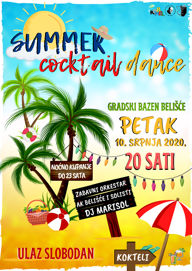 Nakon što je belišćanski bazen i ove sezone otvorio vrata za svoje posjetitelje, drago nam je najaviti drugi po redu zabavno-glazbeni sadržaj “Summer cocktail dance”. Vruća ljetna noć na bazenu u organizaciji je Centra za kulturu Sigmund Romberg, Amaterskog kazališta Belišće i tvrtke Kombel, a održat će se u petak, 10. srpnja 2020., od 20 sati.