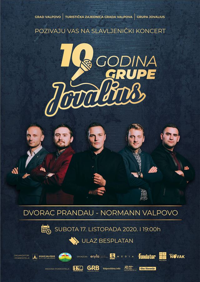 Grupa Jovalius osnovana je u listopadu 2010. godine. Od tada neprestano radi i djeluje, kako na našim prostorima, tako i diljem Lijepe naše, uz nekoliko značajnih nastupa u inozemstvu čime promiče svoje ime, ali i ime našeg grada, odakle članovi ove grupe i potječu. Jovalius je već nadaleko poznat kao grupa koja svojom glazbom uveseljava sve generacije i radi fešte za pamćenje, a uz to je od 2019. godine, jedan od izvođača najveće hrvatske diskografske kuće Croatie Records. Grupa je do sada izdala 2 samostalna singla, a nadolazeći, treći singl ujedno najavljuje i album prvijenac grupe Jovalius. Grupa Jovalius ovim besplatnim koncertom želi zahvaliti svom rodnom gradu, svim simpatizerima grupe, a ponajviše prijateljima i suradnicima koji su im u prvih 10 godina na bilo koji način nesebično pomogli. Na koncertu će uz grupu Jovalius nastupiti i neki od njihovih prijatelja i suradnika uz goste iznenađenja.