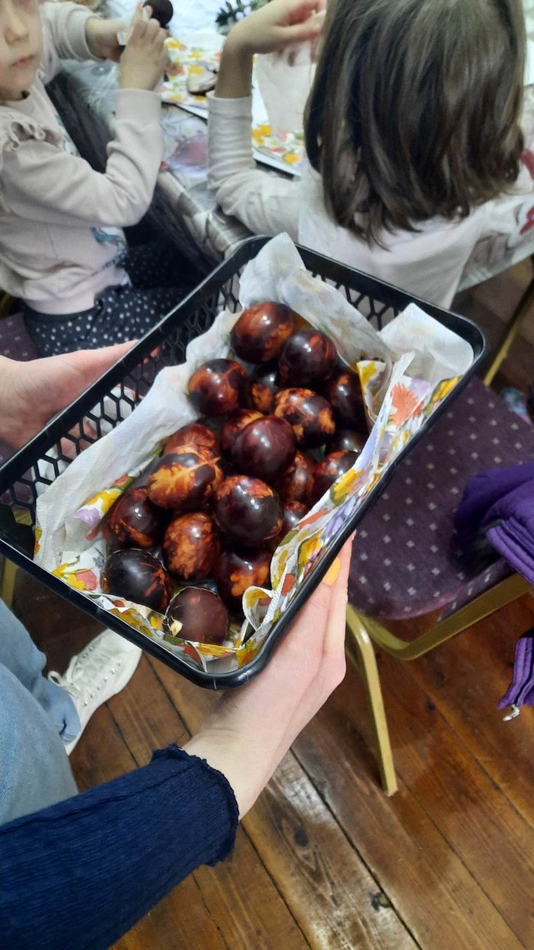 Gosti Marte Đurković bila su djeca iz skupine Žabice, Dječjeg vrtića Maza, a nakon interaktivnog prikaza uskrsnih običaja i sami su se kreativno mogli izraziti bojanjem pisanica.