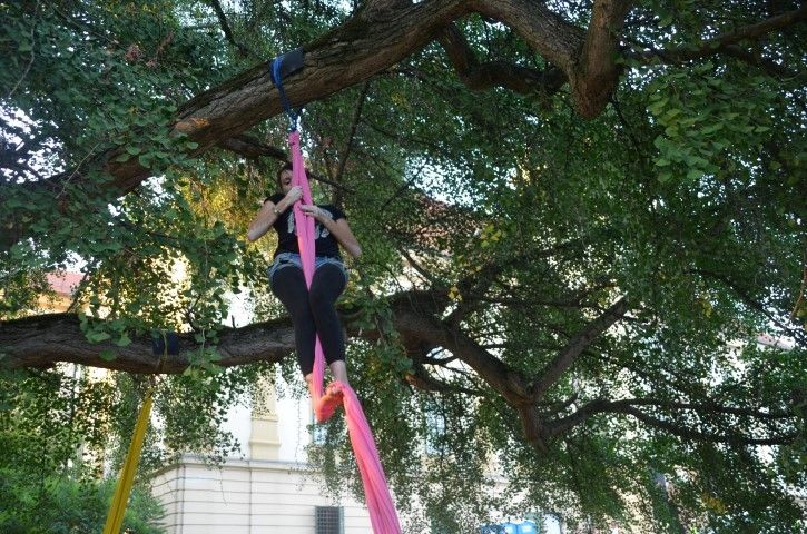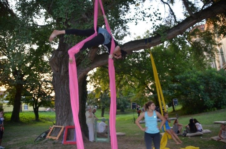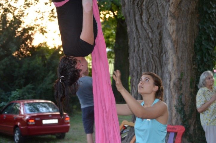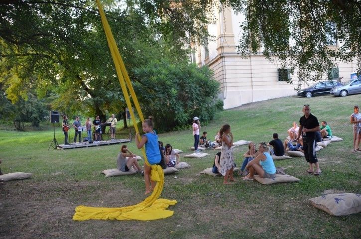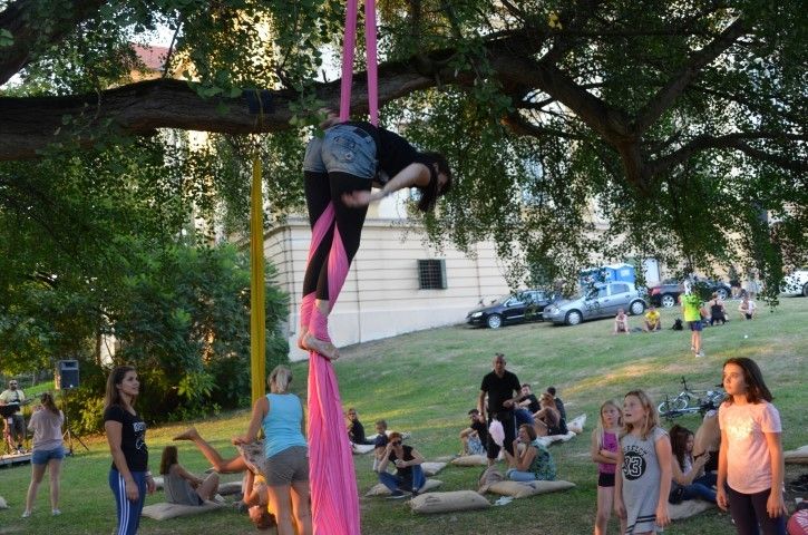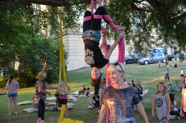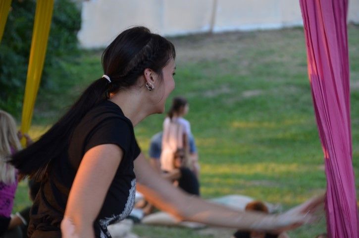 Ondje se odvijala radionica plesa na svili, istovremeno s nastupom valpovačkog sastava Stray Rounds. Sjajna opuštajuća atmosfera koja je prethodila noćnom programu unutar zidina dvorca.
