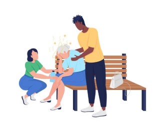 Ako član obitelji ili osoba kojoj pomažete ima vruću i suhu kožu ili delirij (nerazumno razgovara, nemirna je), grčeve i/ ili je bez svijesti, odmah pozovite liječnika/ hitnu medicinsku pomoć. Dok čekate na liječnika/ hitnu medicinsku pomoć, polegnite osobu u hladniji prostor, podignite joj noge u visinu iznad razine srca, odstranite joj odjeću i počnite s rashlađivanjem (hladni oblozi na vrat, ispod pazuha i na prepone ili špricanje kože s vodom temperature od 25 do 30°C). Izmjerite osobi temperaturu i hladite ju sve dok se tjelesne temperatura ne spusti ispod 38°C. Nemojte osobi davati acetilsalicilnu kiselinu ili paracetamol. Ako je osoba bez svijesti postavite ju u bočni položaj.