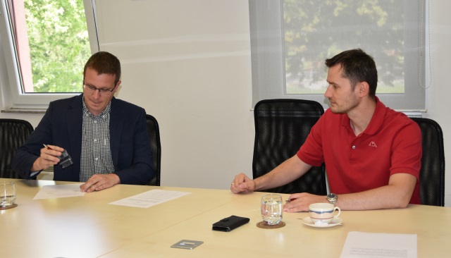 BELIŠĆE Zamjenik gradonačelnika Belišća Domagoj Varžić, danas je s direktorom tvrtke Fortis Labor d.o.o. Lorenzom Gašparićem, potpisao ugovor o korištenju aplikacije SOM sport.