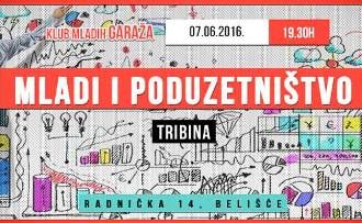 BELIŠĆE U utorak 07.lipnja s početkom u 19.30h u prostorijama Kluba mladih Garaža održat će se javna tribina pod nazivom “Mladi i poduzetništvo”.