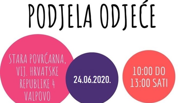 VALPOVO Gradsko društvo Crvenog križa Valpovo obavještava da će se danas, u srijedu, 24.06.2020. godine održati podjela rabljene, odnosno donirane odjeće.