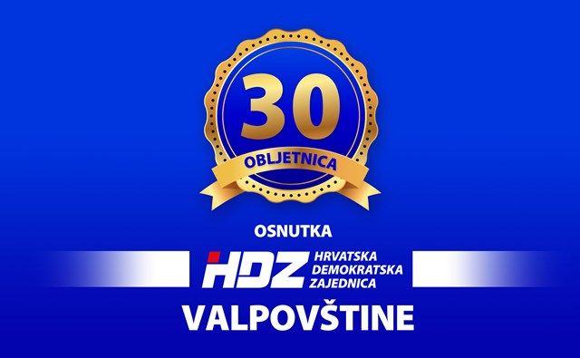 VALPOVO Gradski odbor Hrvatske demokratske zajednice Grada Valpova organizira proslavu 30. obljetnice osnutka Hrvatske demokratske zajednice Valpovštine.